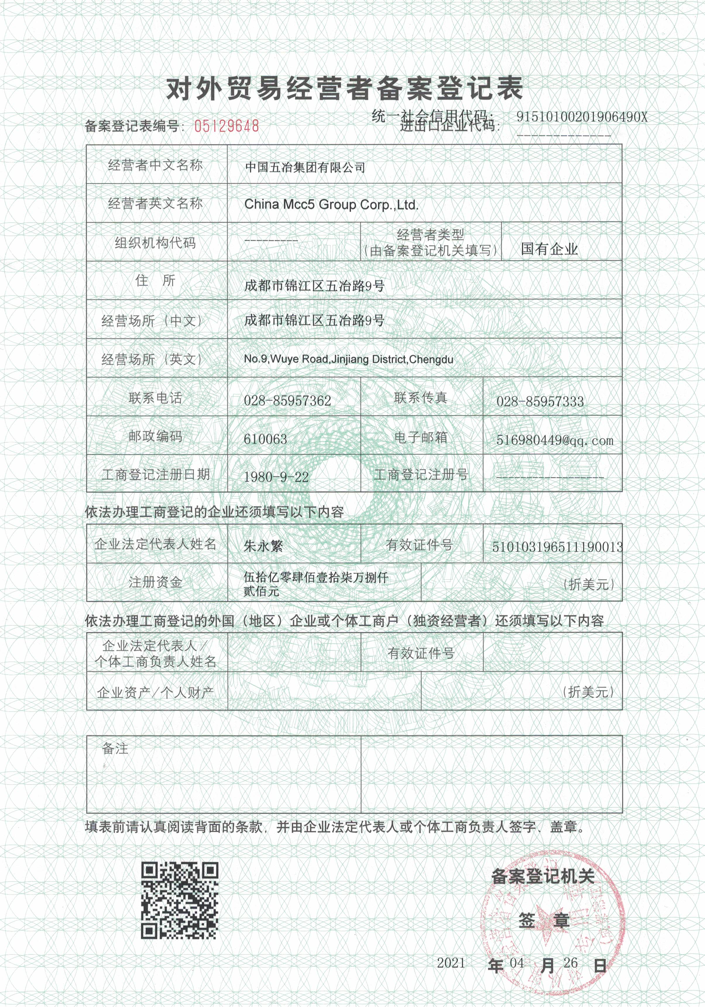 对外贸易经营者备案登记证书