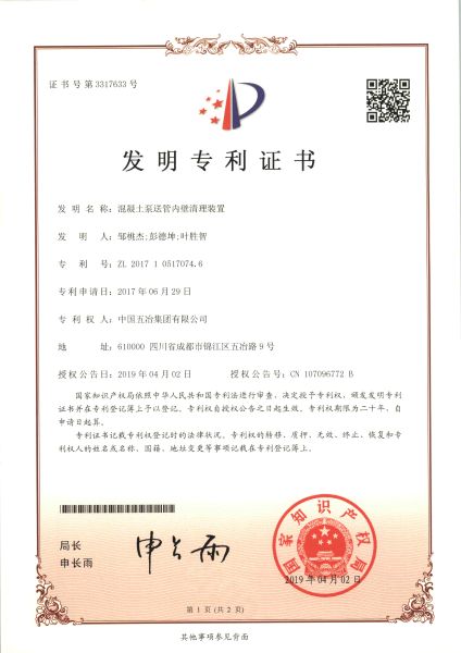 混凝土泵送管内壁清理装置 ����� �������Ƴ������������ �������Ƴ������������ �������Ƴ������������ �������Ƴ������ZL201710517074.6