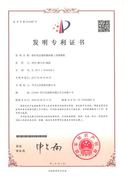 矩形高层建筑烟囱施工用滑模板 ZL201710����� �������Ƴ������������ �������Ƴ������������ �������Ƴ������������ �������Ƴ�������516348.X