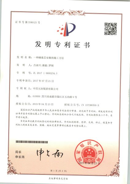 一种蜂巢芯安装的施工方法 ZL201710����� �������Ƴ������������ �������Ƴ������������ �������Ƴ������������ �������Ƴ�������600234.3