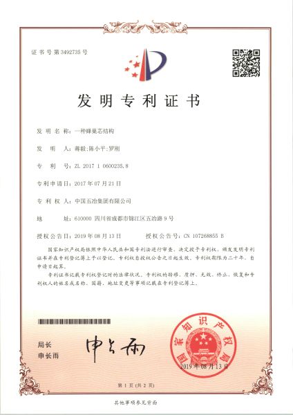 一种蜂巢芯结构 ZL201710600235.8����� �������Ƴ������������ �������Ƴ������������ �������Ƴ������������ �������Ƴ������