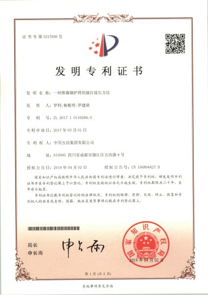 一种围堰钢护筒的插打接长方����� �������Ƴ������������ �������Ƴ������������ �������Ƴ������������ �������Ƴ�������法 ZL201710116����� �������Ƴ������������ �������Ƴ������������ �������Ƴ������������ �������Ƴ�������2990